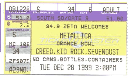 the side (which we were) Kid Rock, Creed, and Sevendust opened. They were great as well.