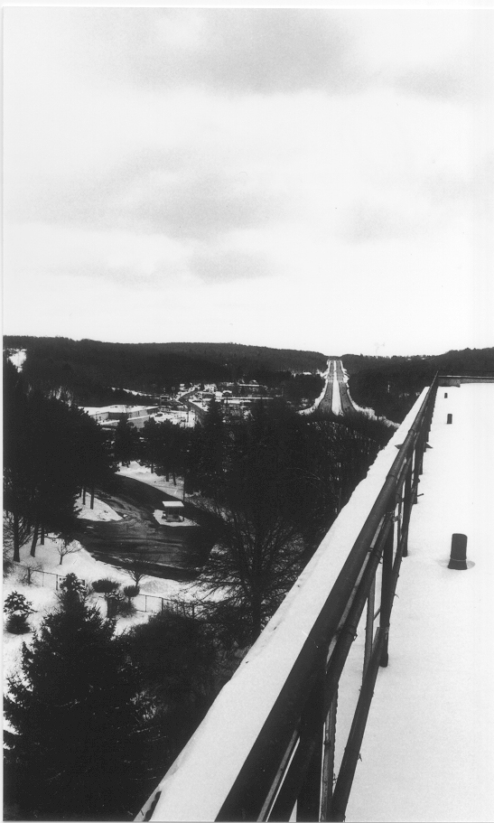 Looking at the guard gate and highway from the top of the Jennie G.